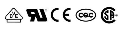 - 安規認證:1 to 10A (VDE、CQC);1 to 15A (UL、CSA)